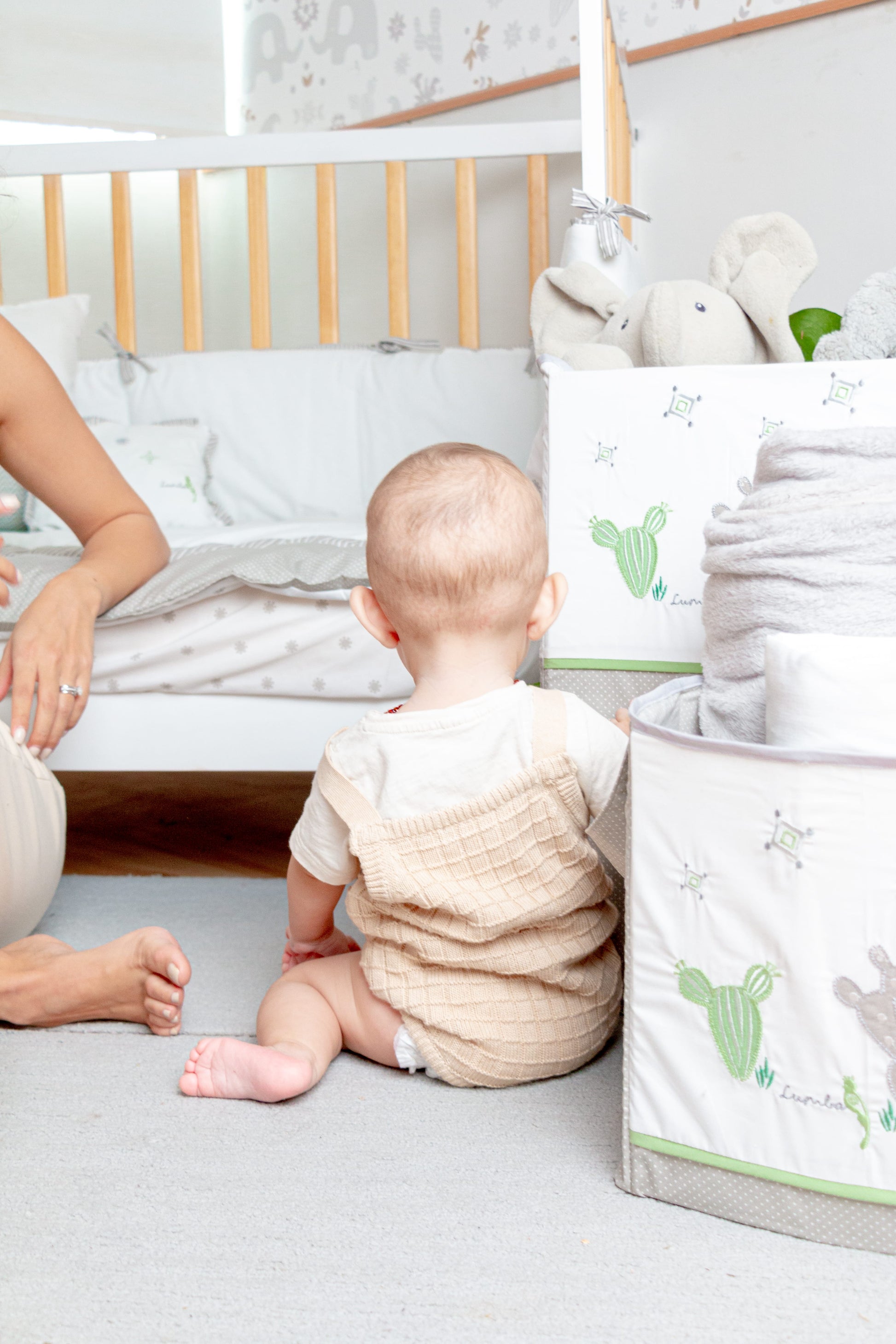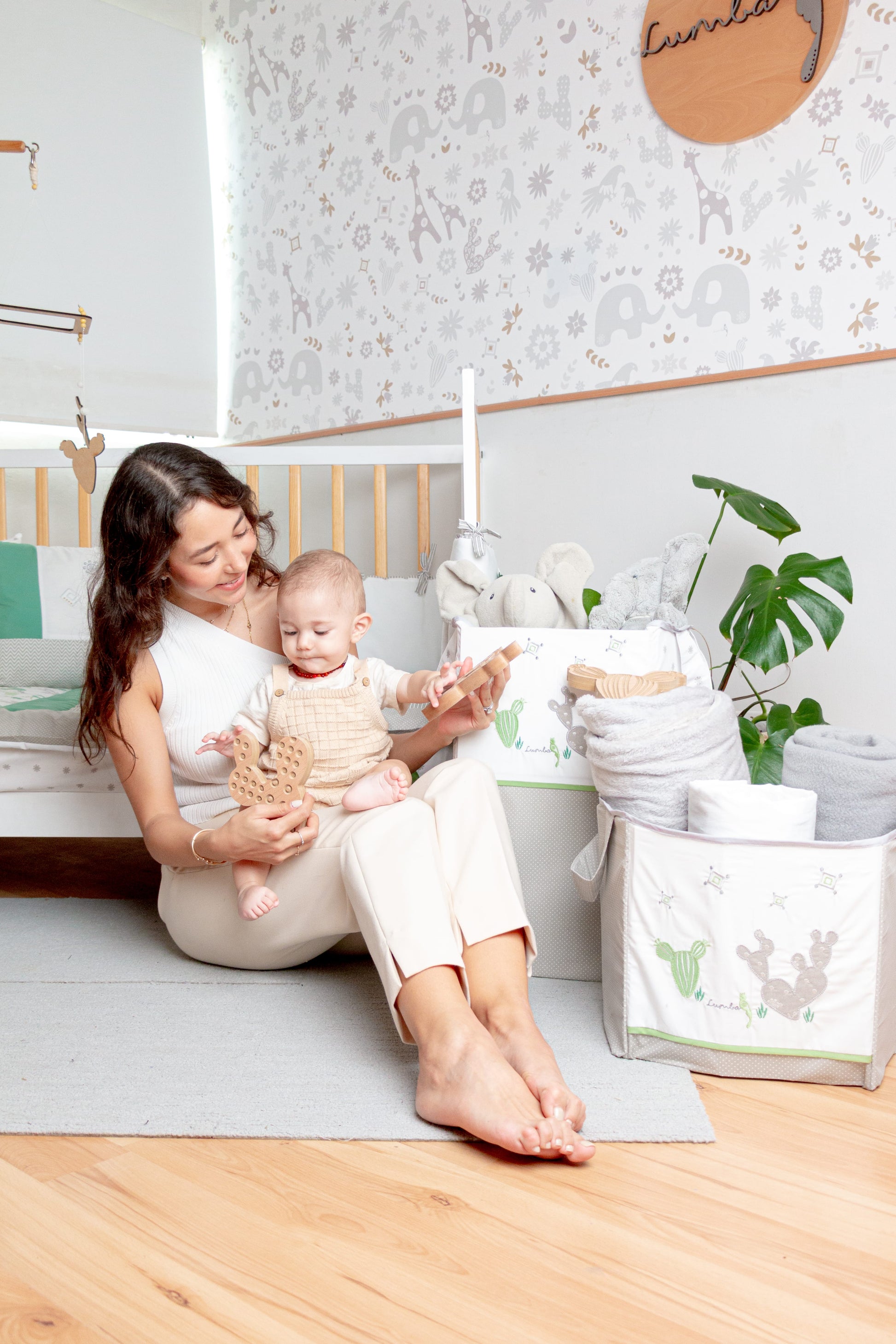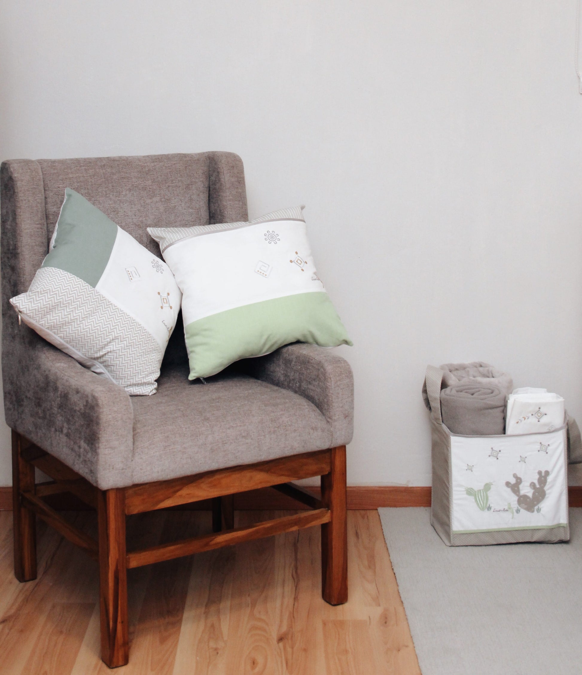 Organiza y localiza diferentes productos con nuestros cestos multiusos: ropa sucia, juguetes, pañales, accesorios, etc. El frente está bordado combinando las diferentes telas del mismo diseño del coordinado.