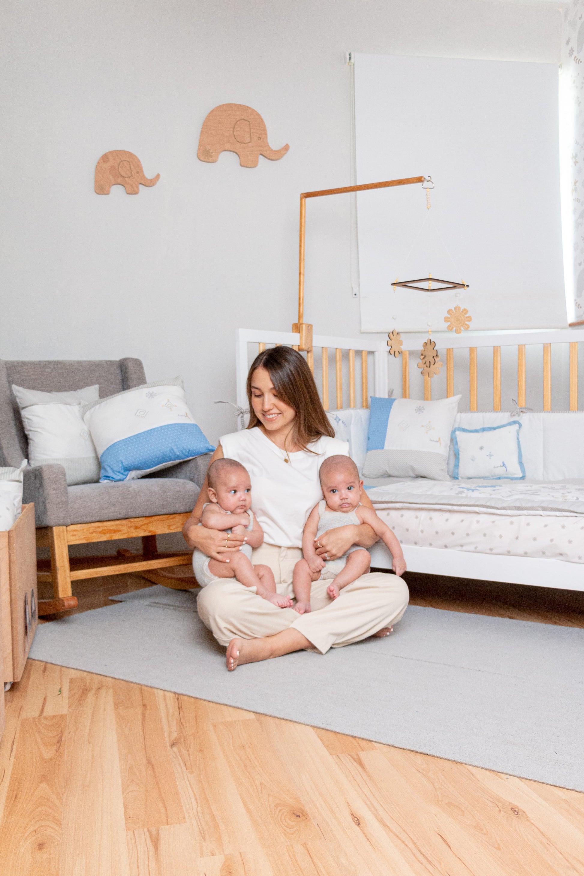 Set de 2 cojines bordados con símbolos icónicos de Lumba en colores grises y beige (neutros). Combinados con diferentes telas haciendo juego con el coordinado. Ideales para decorar cualquier espacio del cuarto.