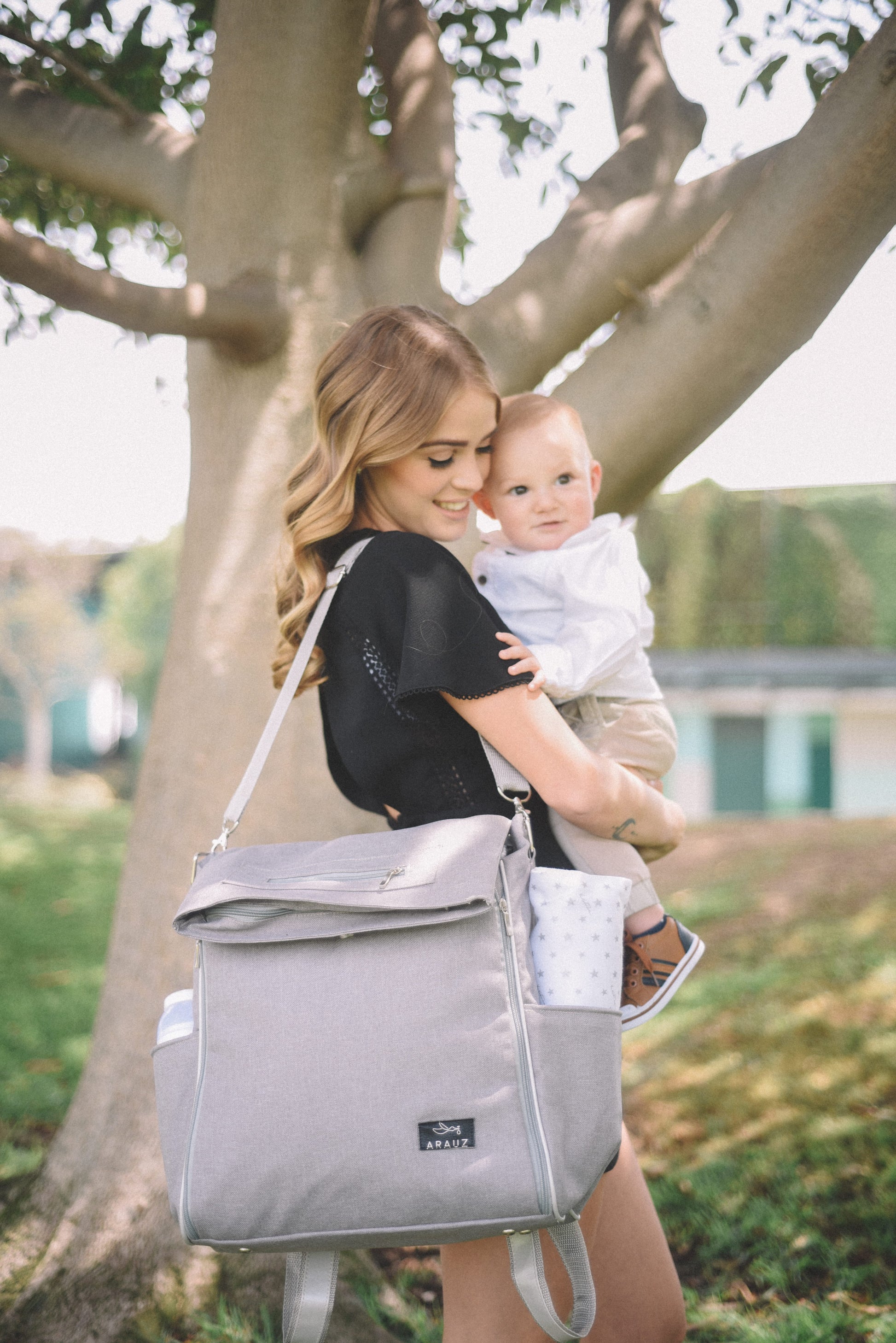 Utiliza la pañalera de 4 diferentes posiciones para que quedes manos libres: