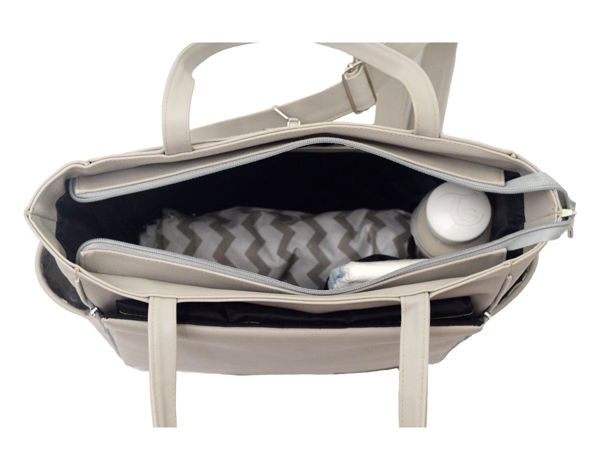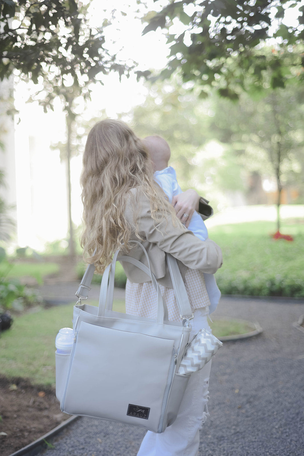 ¡Manos libres durante tu día a día! Elegante y versátil, una bolsa con todas las funciones de una pañalera. Con sus asas ajustables para no perder practicidad y convertirla en backpack. Este modelo cuenta con una extensión del cambiador para hacerlo aún más grande. Su interior de diseño inteligente tiene 5 compartimientos interiores, 2 exteriores y 2 más en la parte del cambiador, con la finalidad de que puedas organizar y localizar más rápido.