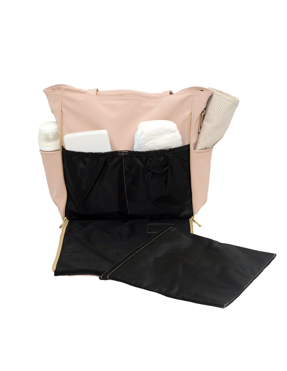 ¡Manos libres durante tu día a día! Elegante y versátil, una bolsa con todas las funciones de una pañalera. Con sus asas ajustables para no perder practicidad y convertirla en backpack. Este modelo cuenta con una extensión del cambiador para hacerlo aún más grande. Su interior de diseño inteligente tiene 5 compartimientos interiores, 2 exteriores y 2 más en la parte del cambiador, con la finalidad de que puedas organizar y localizar más rápido.